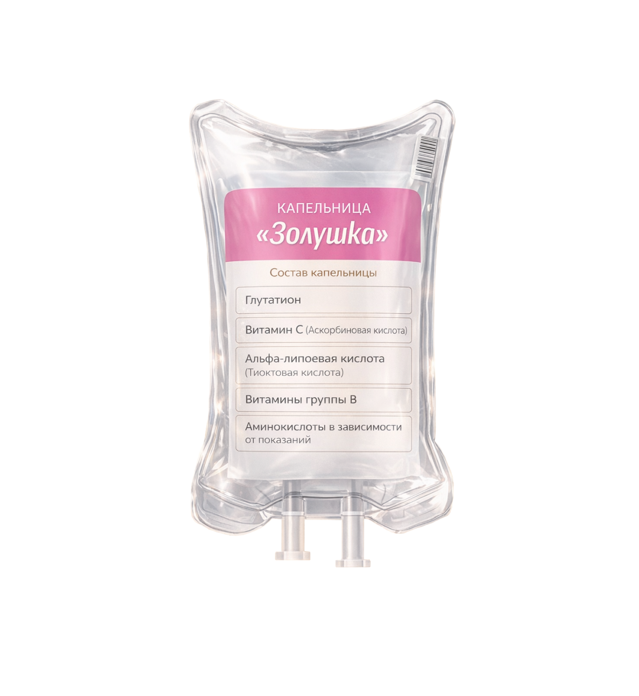 Важно! Капельница «Золушка» — это медицинская процедура, которую проводят в лицензированной клинике по назначению врача. Если вы встретите предложения «купить препарат» для капельницы или поставить ее «на дому» без медицинского контроля — это небезопасно. Самостоятельное введение инфузионных растворов без контроля специалиста и оценки противопоказаний может привести к серьезным осложнениям. Не экономьте на своем здоровье — выбирайте сертифицированную клинику.