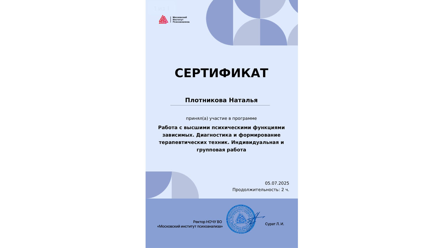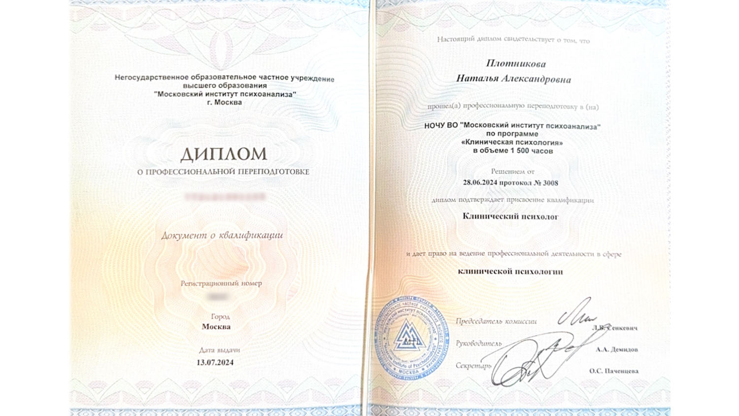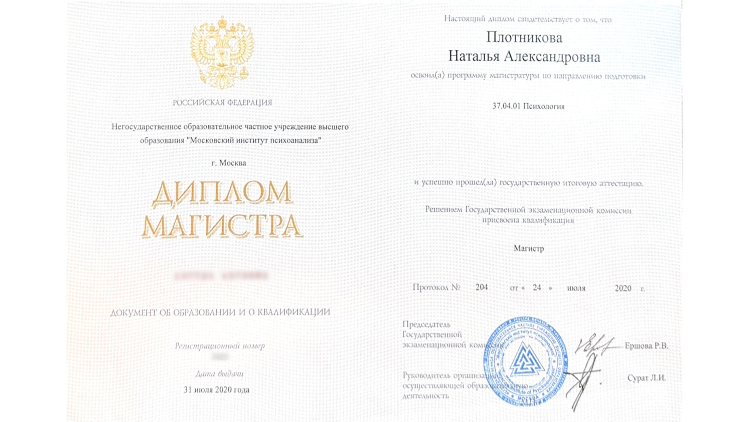 Московский институт психоанализа, Консультативная психология, магистратура, 2020